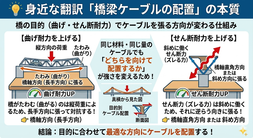 「曲げ耐力とせん断耐力は、同じ方向のケーブル配置で同時に向上させることができる」