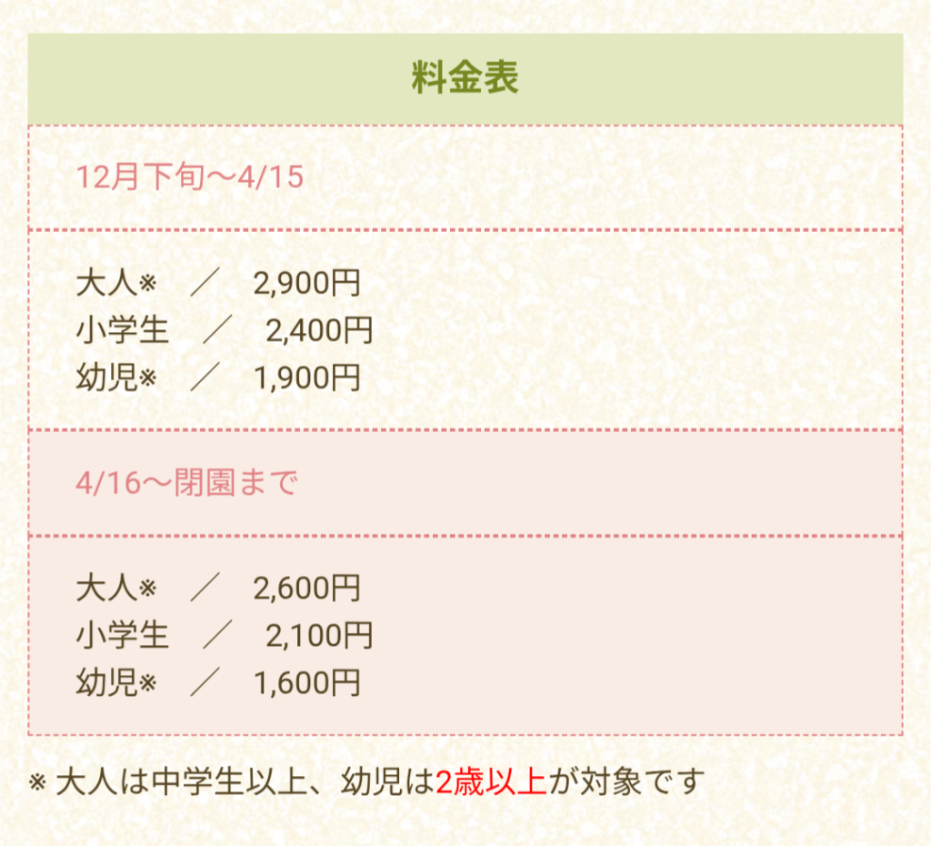 気になる料金はこちらです。時期によって少し違うみたいですね。